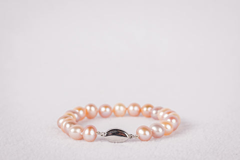 Elegant and refined, this bracelet features luminous natural pink freshwater pearls, each measuring approximately 7mm. Their soft blush tone and radiant luster make this piece a classic that shines. It is a must for those who love pink pearls.