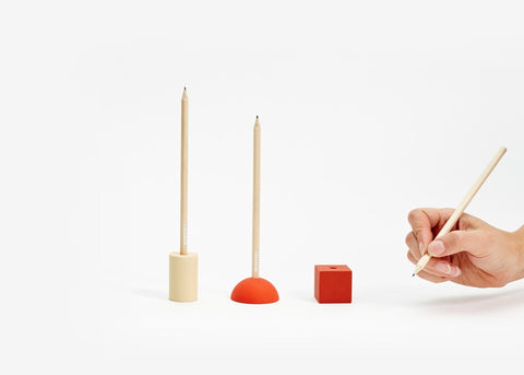 .A set of erasers for those with tidy desks but unpredictable penmanship. Each eraser has a hole in the middle for keeping that pencil up. Pencils included.